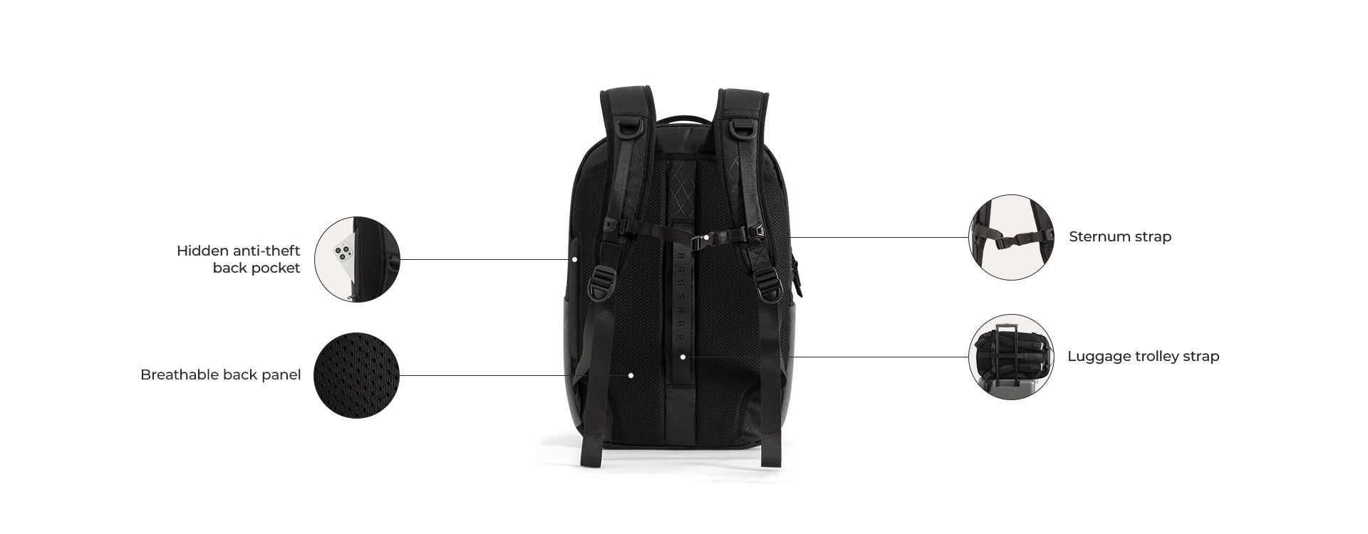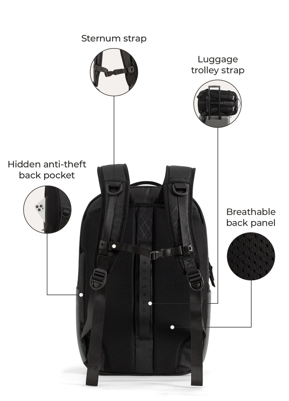 - Breathable back panel