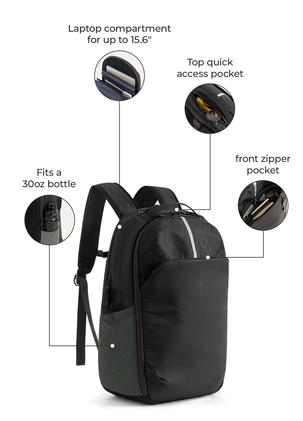 - Laptop compartment for up to 15.6”