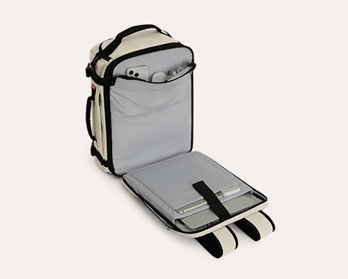 This backpack grows from 28L to 38L, with smart dividers to keep shoes separate and tech in place. From terminals to city streets, this backpack’s built to move the way you do.
