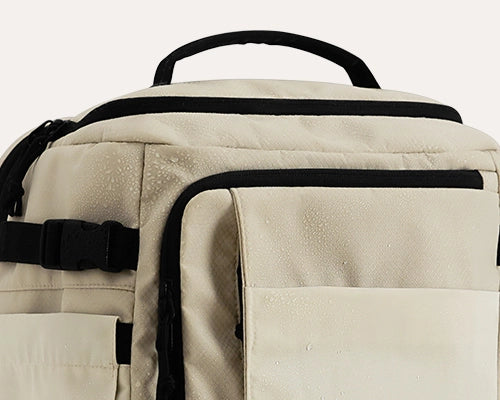 Ripstop nylon with PU coating shrugs off rain, while a polyester taffeta lining keeps your gear cushioned and smooth.