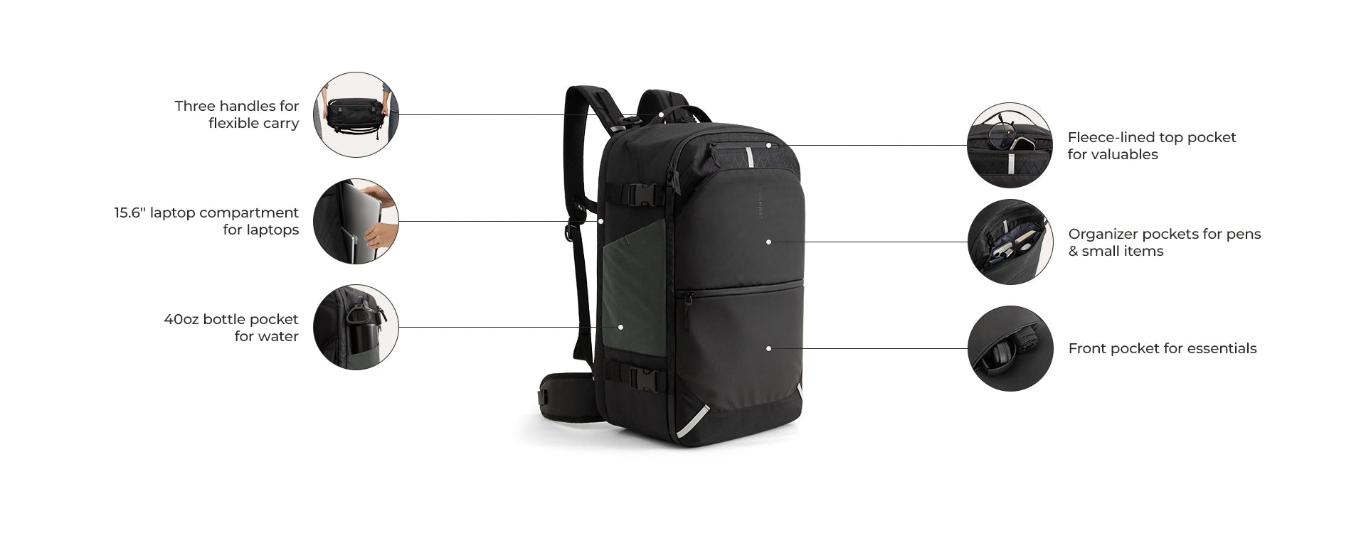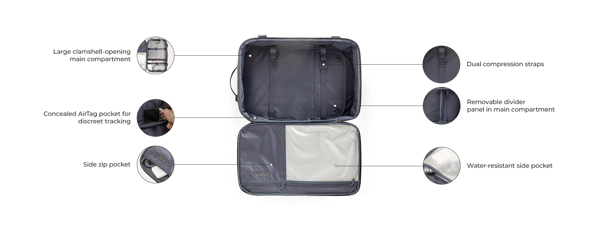 • Anti-theft zipper, hidden pocket, and AirTag slot for security