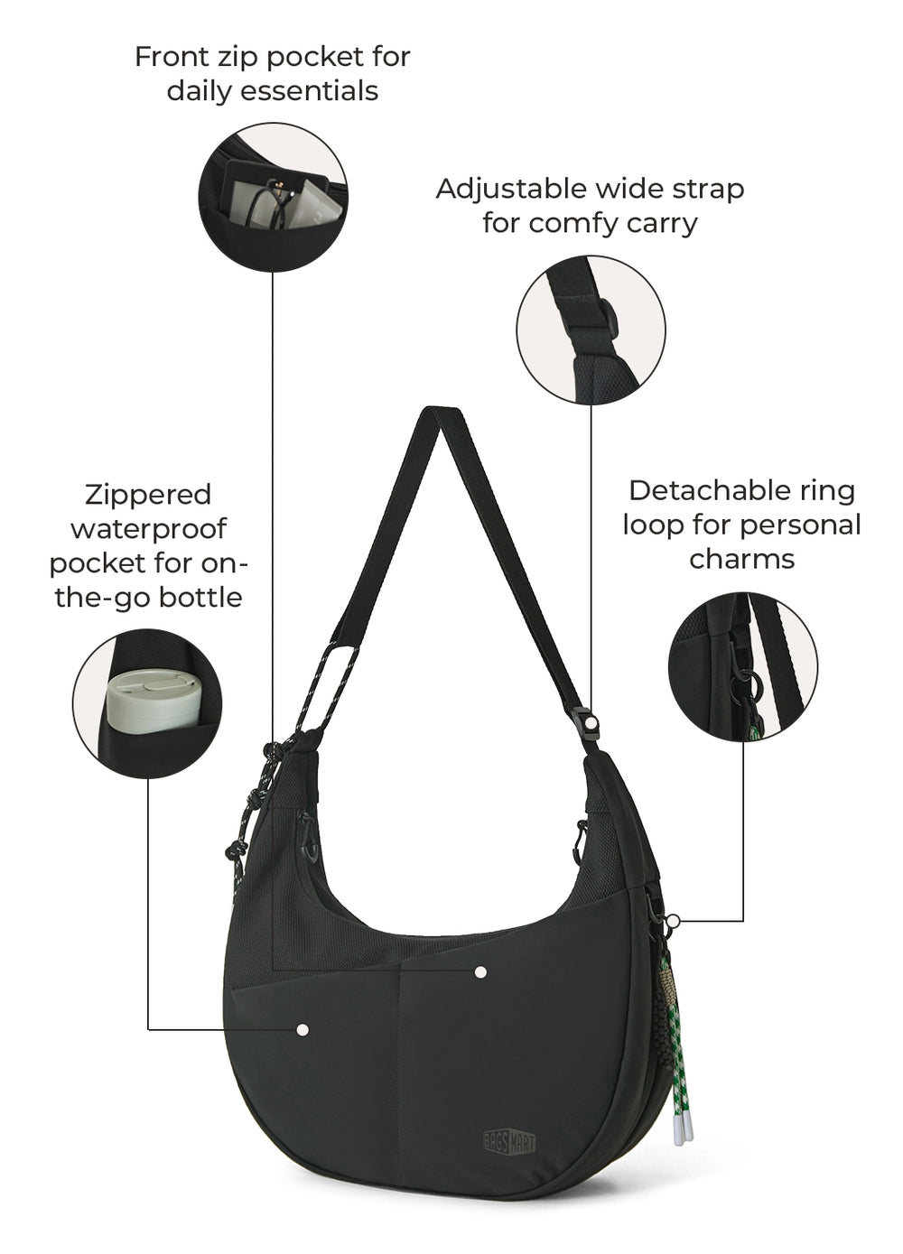 - Right-side zip pocket for quick-access essentials.