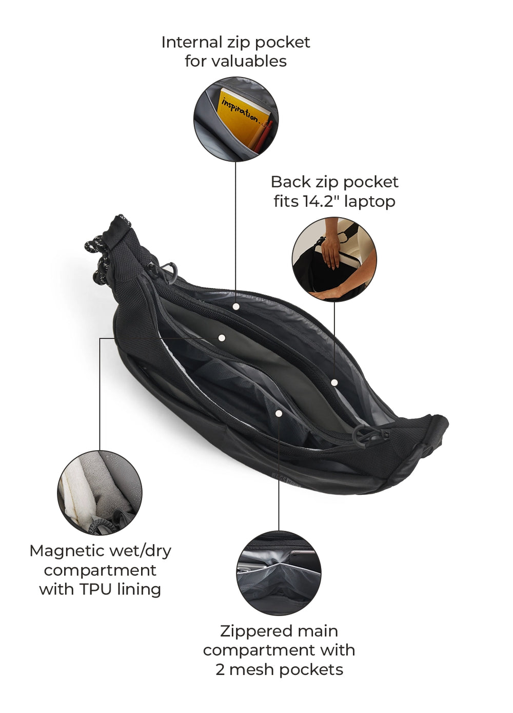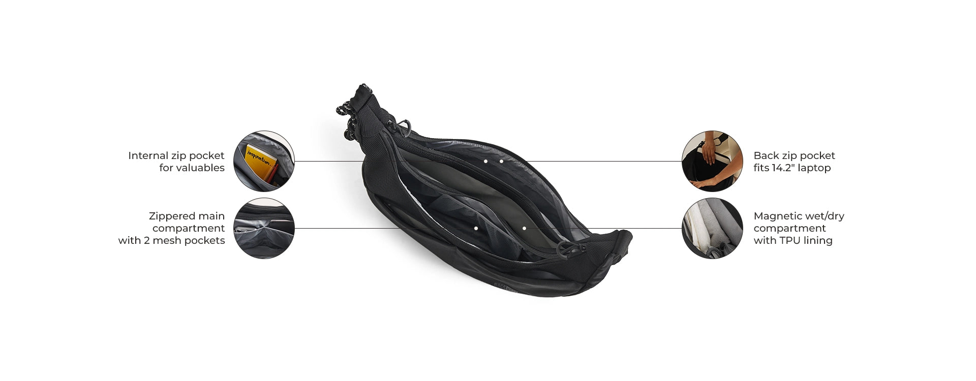 - Center magnetic wet/dry compartment with TPU lining.