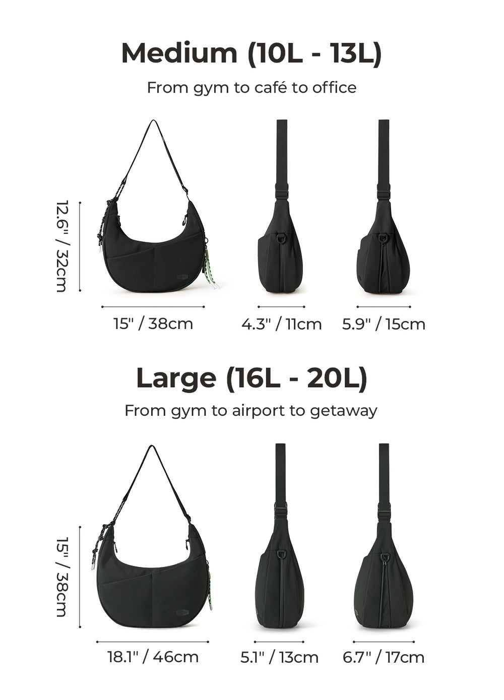 - Adjustable Strap: 60cm - 108cm / 23.6" - 42.5"